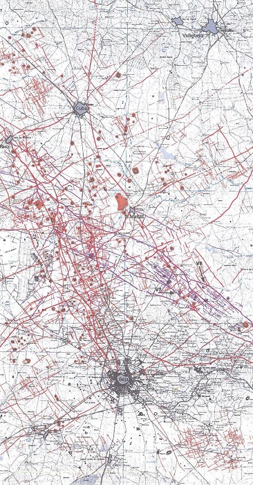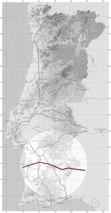 From this understanding, the effort of defining such archaeological spaces, took as a starting point the work developed by Cedric Lavigne over the ancient agrarian structure of this territory, analyzing, through an aerial interpretation method, the traces of its ancient parcels. Thus, virtually defining what we will call in this work the “Lavigne universe”, an area that embraces a triangle formed by the cities of Beja (the current Pax Iulia and capital of Alentejo), Faro and Vidigueira, we established a field of experimentation where different methods of defining the limits of our proposal could be tested, and later expanded to the territory as whole.53