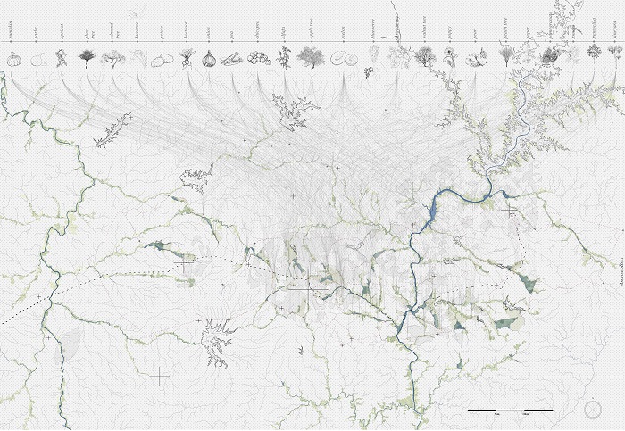 In this way the drawing ceases to be an abstract representation of the historical landscape to somehow propose a reorganization of the territory based on its heritage. Those constellations of shapes, strongly linked with the hydrology of the region, represent an opportunity to safeguard the natural resources of the area.67 In this way we envision the implementation of a historical landscape approach, offering: