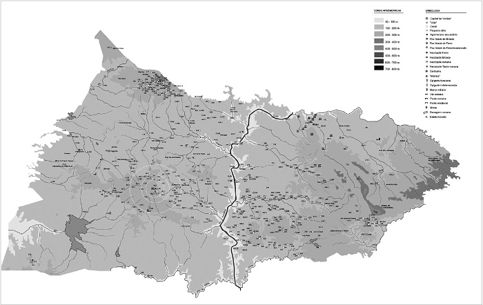 The implementation of a new agrarian structure led to profound changes in the dynamics of the countryside space, reorganizing its social, economic and political functioning.26 This changing process cannot be situated before the first century D.C27 and do not only refer to the construction of the villas, but to the consolidation of a hierarchical system complemented by the Casais and Pequenos Sítios.28 Those structures were displayed according to the fertility of the soil, the hydrography and topography. This explains the non-uniform occupation and distribution of these structures all over the territory (Figure 4), and opposes the ancient landscape to its current homogeneous organization.