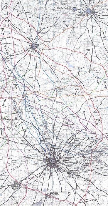 Through a detailed analysis of the ancient routes of this territory Cedric Lavigne recognized an important axis (V10) that dates probably from a period prior to the roman occupation33 (Figure 8). Crossing the region of Barros de Beja, this road used to represent a fundamental connection to the civitas of Pax Iulia,34 allowing agriculture products to reach the coast of the continent. Along this path, several roman villas and dams were displayed, giving support to the agriculture activity of the region.