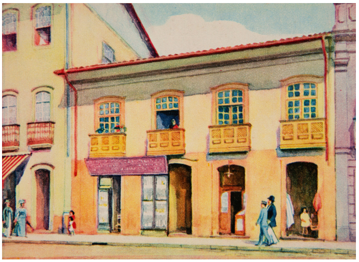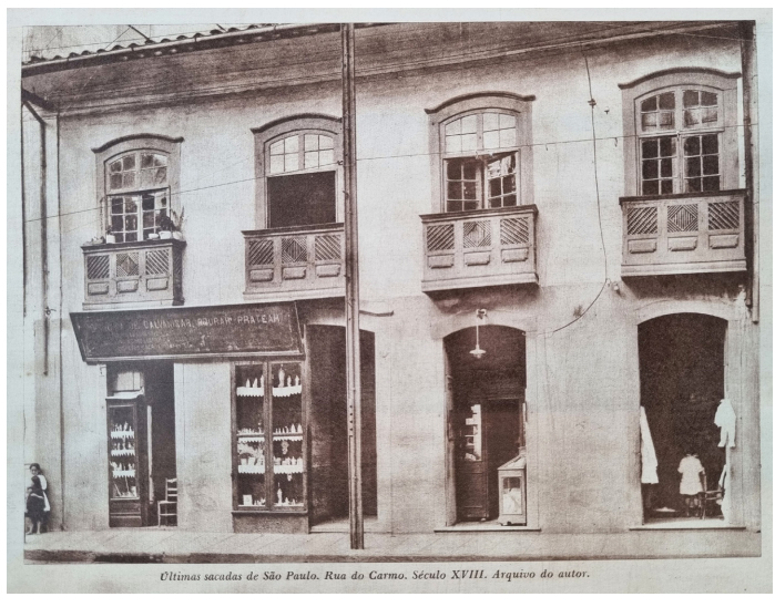 Esse sobrado chegara ao século XX como o único remanescente dentre todos os demais que Militão de Azevedo fotografara, já convertido em estabelecimento comercial, com vitrines e vidraças. Mas Wasth Rodrigues o representou tendo uma mulher em um dos balcões de rótulas do piso superior. Essa associação era, assim, arrastada dos tempos coloniais e de meados do século XIX para a cidade já intensamente aburguesada, com milhares de imigrantes italianos instalados na capital e com os primeiros carros circulando nas ruas centrais.