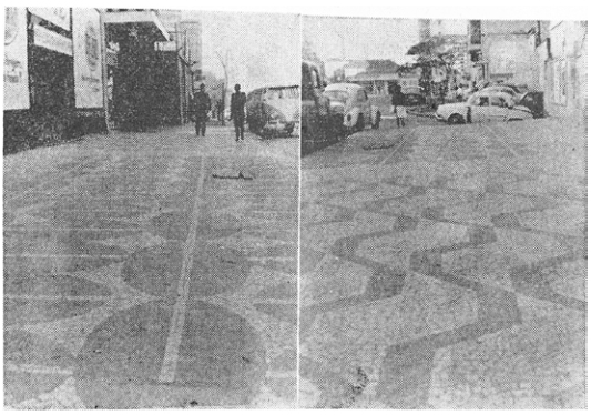 Quanto aos passeios laterais, constituem hoje um fator de conforto, e de embelezamento. Com seus desenhos, representando esquematicamente os contornos do mapa do Estado de São Paulo, as novas calçadas asseguram uma espécie de fisionomia original e peculiar.77