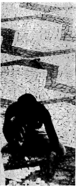A referida matéria apresentou a entrevista feita a dois artesãos envolvidos na obra, Cacimiro Candido, nascido em Campinas, e Antonio Silva, nascido em Marília. Ambos também trabalharam no calçamento da praça dos Três Poderes, em Brasília. Cacimiro, um dos chefes da equipe, contou que tinha trinta anos de experiência nesse ofício, tendo atuado em diferentes cidades da região Centro-Oeste do país. Em seu expediente, enquanto Antonio Silva lapidava pedras com uma marreta para reduzi-las, Cacimiro as assentava em uma base de cimento e areia. Desse modo, os artífices produziam sete metros quadrados de calçada por dia, o que levava em média quatrocentas pedras, isto é, aproximadamente dez desenhos do estado de São Paulo.76