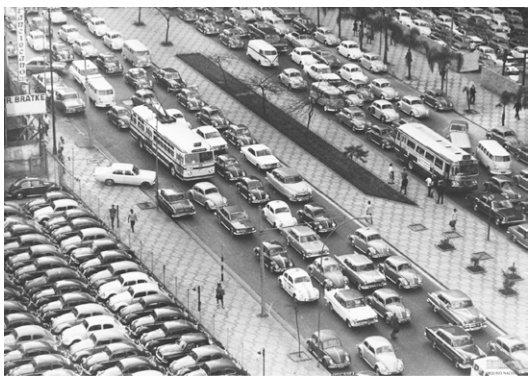 Considerando a amistosa rivalidade com o Rio de Janeiro, o projeto chegou a ser descrito como a “resposta paulista ao brilhante projeto da calçada de Copacabana”91. Esse comentário pressupunha uma inspiração no calçadão carioca, percepção corroborada pelos relatos resgatados nesta pesquisa. Desde as primeiras manifestações do prefeito Faria Lima, o calçadão foi citado como referência, aparecendo no memorando ao secretário de Obras,92 no anúncio de abertura do concurso93 e no início das obras.94