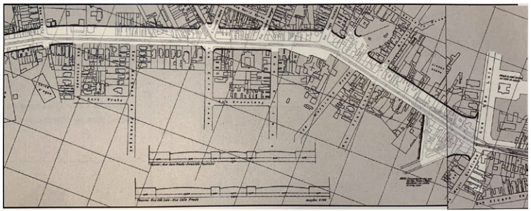 No trecho transcrito, Faria Lima exige que se apresente um tipo de calçamento a ser aplicado nas obras, mencionando como exemplos as calçadas de Copacabana e as colunas de Brasília. Fica claro que a escolha da calçada, assim como as referências mencionadas, estava sendo pensada como forma de dar à cidade uma característica própria, contribuindo assim para construir a imagem da “nova São Paulo”. Entretanto, tal aspecto levaria ainda mais do que catorze dias para ser definido.