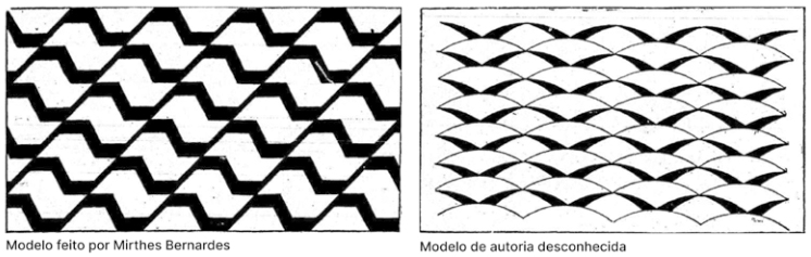 Cabe aqui ressaltar que este artigo visa apenas reconstruir a história do padrão original aplicado em pedra portuguesa, versão que consta em sua patente, pois os relatos de Mirthes centram-se em suas origens.