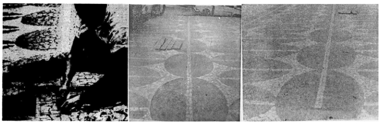 Outro fato importante que permeou os preparativos para exposição dos projetos de calçamento foi a mudança, demonstrada por três fotografias diferentes, do padrão de grãos de café aplicado em pedra portuguesa em relação ao previsto na primeira apresentação de tal modelo.