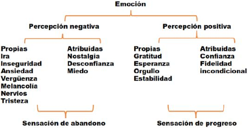 En la figura 1 se presenta la ambigüedad emocional captada en los relatos de las informantes, a partir de sus narraciones donde reflejaron la manera de percibirse. Esto evidencia varios aspectos con significación profunda, condicionantes de la vida emocional dentro de la relación conyugal transnacional y también a nivel individual, entre ellos: la calidad y frecuencia del contacto, el éxito o fracaso de la migración evaluado a través de obtención de las remesas.