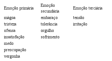 As emoções terciárias são subdivisões mais específicas das secundárias, tais como:
