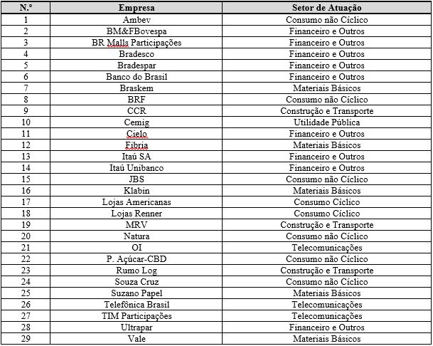 Com o intuito de responder o objetivo proposto neste estudo – identificar o nível de responsabilidade social das empresas que pertencem ao programa “Em Boa Companhia” da BM&FBovespa –, realizou-se uma pesquisa descritiva, documental e quantitativa. A população do estudo compreendeu, assim, todas as empresas que fazem parte do referido programa e estão listadas no Índice de Sustentabilidade Empresarial (ISE) e no Índice Carbono Eficiente (ICO2). Depois de excluídas as empresas duplicadas, a população do estudo ficou composta de 29 empresas (Quadro 1).