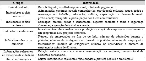 Os dados encontrados nesta pesquisa corroboram os resultados evidenciados no estudo de Pinto e Ribeiro (2004), pois concluíram que o Balanço Social se apresenta em modelos diferentes para determinadas empresas e que as informações fornecidas pelas organizações ainda não atingiram o nível desejado. Ademais, notaram que os indicadores são os mais variados, que há falta de informações relevantes e que os dados divulgados são de apenas alguns períodos, o que não permite aos usuários uma utilidade mais ampla dessas informações.