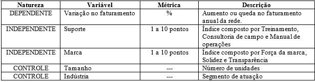 Por sua vez, o Quadro 2 apresenta a descrição das variáveis utilizadas nesta pesquisa.