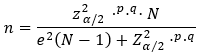 A população desta pesquisa é composta de 810 alunos. Para o cálculo do tamanho mínimo da amostra, optou-se pela fórmula a seguir (Equação 1), que, segundo Fonseca e Martins (1996), destina-se a uma população finita, considerando-se 95% de nível de confiança e 5% de erro padrão.