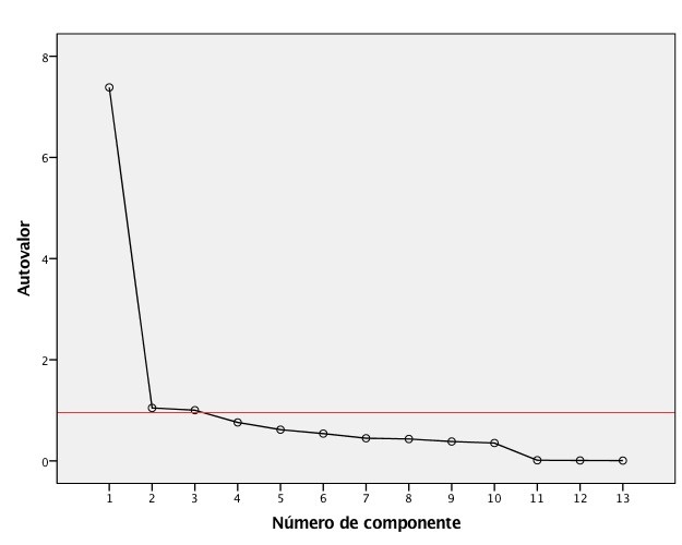 No gráfico de escarpa (Figura 4), consta o número de componentes fatoriais extraídos em relação aos autovalores associados a esses fatores, verificando-se três fatores acima do limite 1,00.