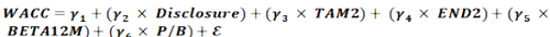 A partir do problema de pesquisa do trabalho, ou seja, se existe associação negativa e causal entre o custo de capital e o nível de disclosure das empresas de construção civil de capital aberto do Brasil, a seguinte hipótese foi definida: o custo de capital das empresas de construção civil negociadas na bolsa apresenta associação negativa e causal com o nível de disclosure. A equação utilizada neste estudo estabelece o custo de capital como função do disclosure e de outras variáveis de controle, como segue: