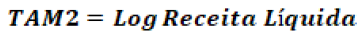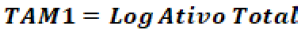 TAM = tamanho da empresa. Espera-se que quanto maior esta variável menor o custo de capital, o que já foi verificado por BOTOSAN (1997). Duas medidas foram utilizadas para estimar esta variável, conforme as Equações 7 e 8, de acordo com Alencar (2007, p.52);