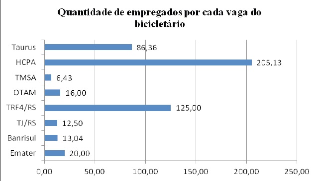 Fonte: elaborada pelos autores.Quantidade de empregados por cada vaga no bicicletário