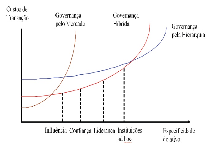 São visíveis as diferenças entre o modo de governança criado pelo mercado e pela hierarquia; contudo, pouco ainda se tratou de estudar com profundidade os diferentes tipos incluídos no modo híbrido de governança, que dispõe de valores intermediários aos dois modos polares e que possui tanto a capacidade de adaptação autônoma quanto coordenada (Williamson, 1991).