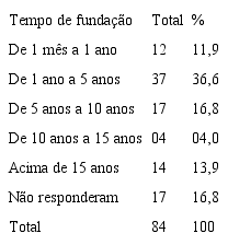 Para analisar o perfil das empresas, foram considerados os quesitos tempo de fundação da empresa, número de funcionários, receita operacional bruta e setor de atuação. No que se refere ao tempo de fundação da empresa, a maior média concentrou-se nas empresas que já atuam de 1 a 5 anos na área, conforme a Tabela 2.