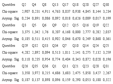 A seguir, apresentam-se os principais resultados e conclusões referentes à aplicação do referido teste estatístico.