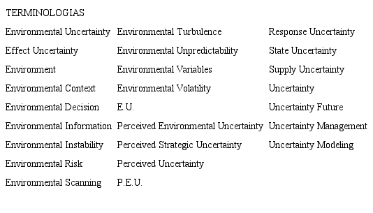 Com relação às variáveis utilizadas para a mensuração da incerteza ambiental, é conclusiva a importância do estudo de Ducan (1972), que serviu de referência à elaboração de muitos instrumentos para coleta de dados, além de fundamentar grande parte dos trabalhos.