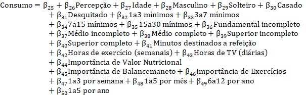 A análise de dados foi feita por meio de equações simultâneas, já que nesse caso é preciso estimar uma regressão para percepção e outra para consumo. Ambas as equações possuem variáveis independentes iguais, mas o consumo depende da percepção. As estimativas foram feitas por meio de mínimos quadrados ordinais, que é a forma adequada quando a variável dependente é métrica, como é o caso de percepção e consumo (ANGRIST; PISCHKE, 2008; HAIR et al., 2009).