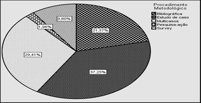As abordagens metodológicas preferidas pelos autores foram analisadas de forma a que se possa ter uma ideia da predominância de determinados tipos, métodos e procedimentos de pesquisa utilizados pelos pesquisadores do tema ora em estudo. Para realizar esta análise, foram utilizadas as informações fornecidas pelos próprios autores sobre o tipo, o método e os procedimentos de pesquisa que eles seguiram. Não cabe a este estudo julgar eventuais incongruências, já que se tratam de artigos aprovados em revistas ou eventos que possuem procedimentos de revisão (MURITIBA et al. 2010).