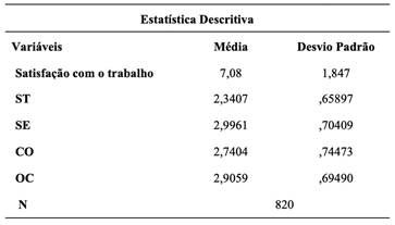 Além das quatro variáveis, utilizou-se também para este ensaio a variável ordinal denominada “Quão satisfeito estou com o trabalho”, a qual compôs o modelo, conforme mostrado a seguir.