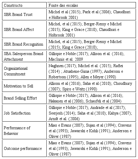 Considera-se que ainda existem poucos estudos que focam o relacionamento entre os vendedores e as marcas. As pesquisas encontradas também não integram SBR com o SBA e não alcançam o nível de relacionamento de SBR com SBA com o desempenho dos vendedores. Na literatura ainda existe esta forte lacuna que precisa ser preenchida.
