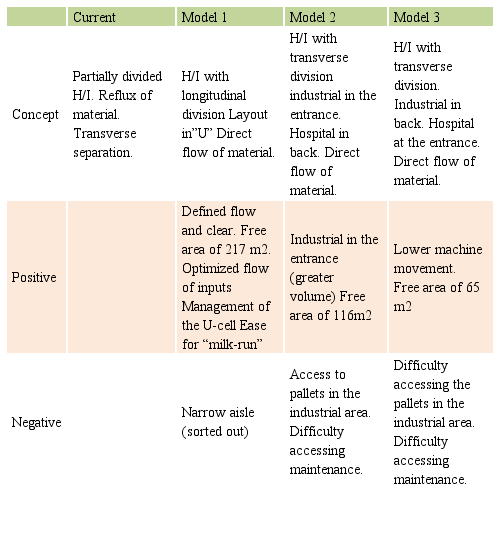 Based on the analysis, the team opted for model 1, understanding that it presented the necessary conditions to attend to the creation of new flow of materials. In Figure 4 are the different stages of the changes.