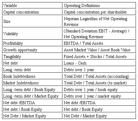 Therefore, the purpose of this research is to identify whether the capital structure of Brazilian public companies is influenced by the capital concentration level. To this end, the publicly traded Brazilian companies listed on the BM&FBOVESPA are sampled. The research deals with the annual data of 104 companies, in the period from 2008 to 2014. This is a quantitative research adopting the panel data regression model (pooled data and random effects).