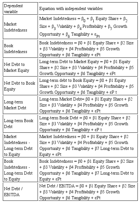 Based on the study variables highlighted in Table 2 and as a way to measure the relations between the dependent and independent variables, Table 3 is structured to present the econometric equation models adopted in the present research.