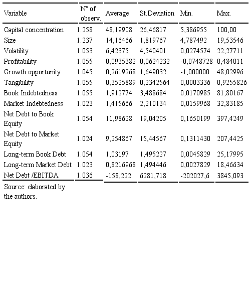 Latin American companies have higher leverage than expected, under the capital structure trade-off theory, because their capital concentration is significantly higher than the one in developed economies (CÉSPEDES; MAXIMILIANO; MOLINA, 2010).