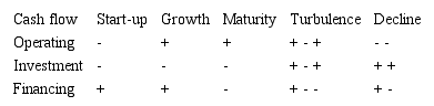 Operationally, Dickinson’s (2011) model incorporates the expected signs of the cash flows for classification at each phase of the life cycle, in accordance with previously established theoretical assumptions. Thus, in the start-up phase because companies need new customers, they suffer deficits because of low revenues and contingent costs, which results in negative operating and investment cash flows. In the growth and maturity phases, profit margins are maximized because of the increases in investment and efficiency, which results in positive operating cash flow. However, in the decline phase, companies have a declining growth rate, which leads them to lower prices so that the operating cash flow will decrease until it becomes negative.