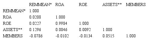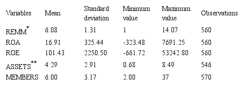 Finally, Table 3 presents the correlation of the study variables via a correlation matrix. Its results show that the highest degree of correlation for the mean remuneration was with the assets. There was a negative correlation between the mean remuneration and the remuneration of the members which, despite indicating a low level, behave as expected, since a higher number of members on the statutory board leads to less renumeration.