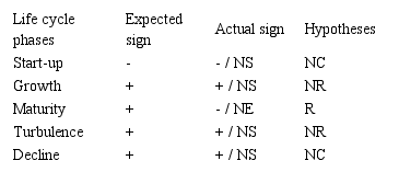 A possible gap in the model is the turbulence phase; no theoretical support has been found in the life cycle theory to represent the signs shown by the cash flows because it is a transition phase for firms. Thus, cash flows that do not show the signs indicated for the other phases should be classified within the turbulence phase.