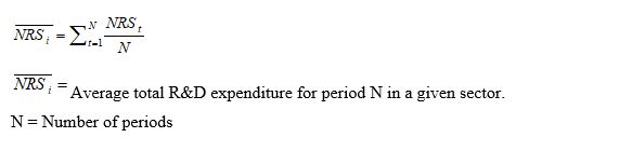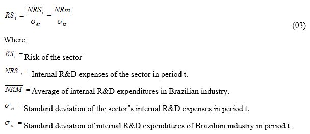 (04)It is also possible to calculate the standard deviation of each variable for a given period t, as well as the average of the total expenses for the sector and the industry as a whole. We can then attain a complex concept of innovation risk: