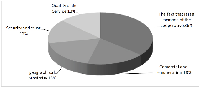 Another important point that corroborated in Figure 2 was concerned the reasons why farmers joined in the cooperatives. We found that 36% of participants believed that joining in a cooperative had benefits related to their production as commercialization, access to credit and financial negotiation in banks, and technical assistance and production storage. The important fact was that 22% were member by tradition, it means, the associativism was passed down; it plays a relevant role in the promotion and continuity of the cooperation process. Followed by: 19% of the participants who answered that to become member in the cooperative was voluntary or to indication; 10% were invited to the cooperative; 10% pointed out confidence, quality, return of financial profit and friendship; 4% geographical proximity; the others (10%) did not answered.