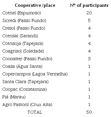Design/metodologia/abordagem: Foi realizada uma pesquisa descritiva com 50 questionários aplicados aos produtores rurais associados às cooperativas do Estado do Rio Grande do Sul, Brasil.