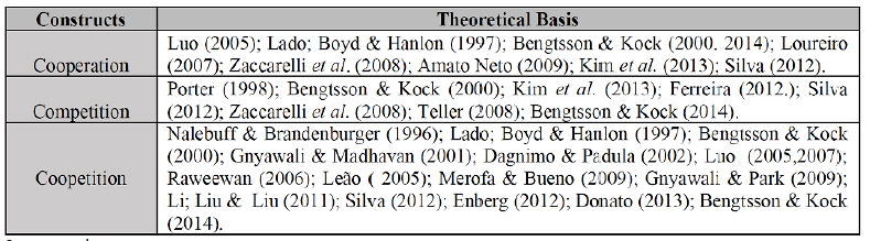 Nevertheless, it is important to consider that this research is exploratory and its results may be related to the recent theory on coopetition, considering that Bengtsson and Kock (2014) affirm that there is not yet a very clear definition about the coopetition. The authors Nalebuff & Brandenburger (1996); Lado; Boyd & Hanlon (1997); Bengtsson & Kock (2000); Dagnio & Padula (2002); Oliver (2004); Chen (2008); Gnyawali et al. (2012); Raza-Ullah & Bengtsson (2013) and Raza-Ullah; Bengtsson & Kock (2014) as well have attempted to conceptualize it and there are still differences between the definitions constructed by the authors.
