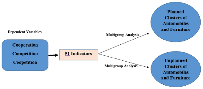 The theoretical-empirical model combines the three constructs (cooperation, competition and coopetition) in the comparison between the planned and unplanned trade retailer clusters of automobiles and furniture to check if there are significant differences between them in relation to the competition, cooperation and coopetition.