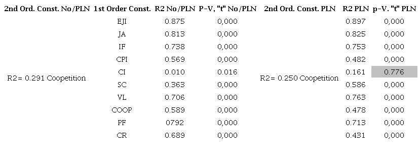 Therefore, the Coopetition does not influence the first-order constructs COOP, PF, CR and VL in the analyzed clusters and it is possible to say that there is no significant difference in the Coopetition in the planned and unplanned clusters.