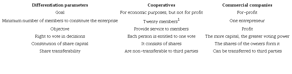 The OCB (2017) tried to synthesize the differences between cooperatives, associations and commercial companies (Table 2).