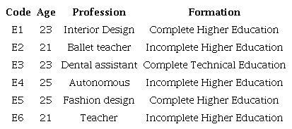 The interviewees were aged between 21 and 25 years old, of which three had a higher education degree, two had a higher education degree and a technical degree. The interviewees were coded in order to remain anonymous during the exposition of excerpts from their speeches. The letter “E” was chosen, followed by the numbering to identify the interviews, as seen in table 1.