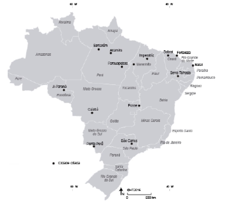 As imagens que seguem mostram os efeitos do programa nas paisagens urbanas, vistas em campo ou na Internet, fotos de inauguração dos novos conjuntos ou vistas verticais obtidas no Google Earth. A figura 2 situa as cidades citadas.