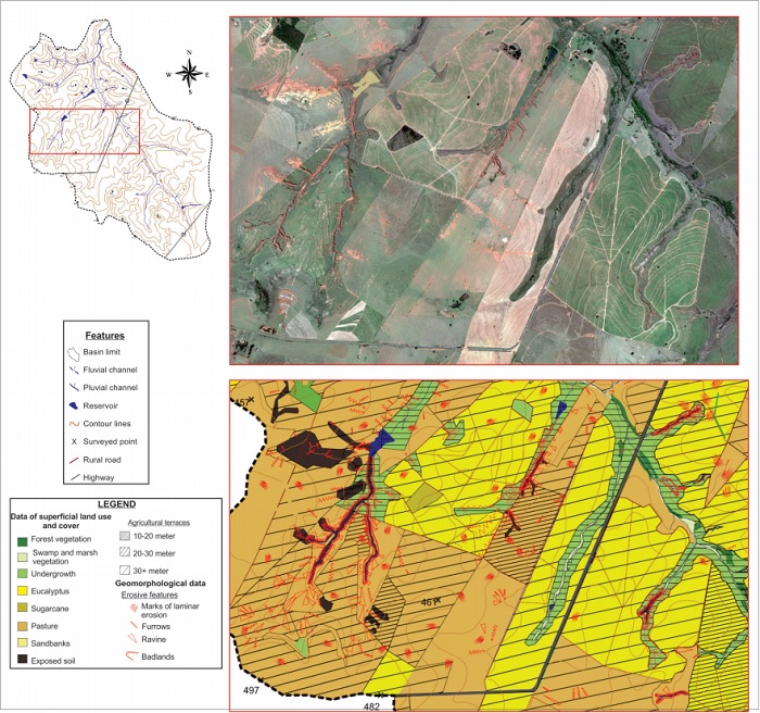 When studying a 46 km² fragment of the Pontal do Paranapanema that makes up the upper basin of the Areia Dourada stream, Marabá Paulista (SP), Zanatta et. al. (2015) used the history of land use related to erosive processes to verify that the increase of areas of sugarcane cultivation, even when accompanied by agricultural terraces and the enclosure of the margins of ravines and gullies, dynamizes the erosive problem of the Basin. Thus, it was observed that there is no adaptation to or respect for the limits of the local ecosystem, nor is there any concern with environmental preservation or the history of degradation of the region, reproducing the predatory use of natural resources.