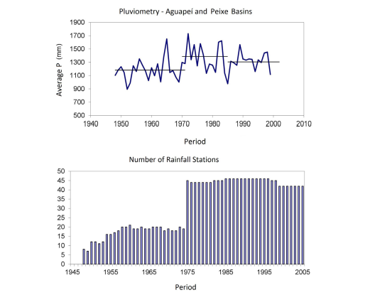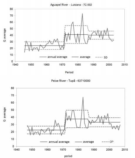 However, not only two hydrological periods were observed, but at least three, considering the data series used. A first period until 1972; another between 1972 and 1984; the third from 1985. It is still likely that this last period or hydrological phase will end in 2001 when a new hydrological period may have begun, but the data series evaluated do not allow better detailing.
