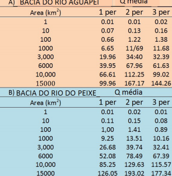 The average specific flow (Qe) in the basins of the Aguapeí and Peixe river