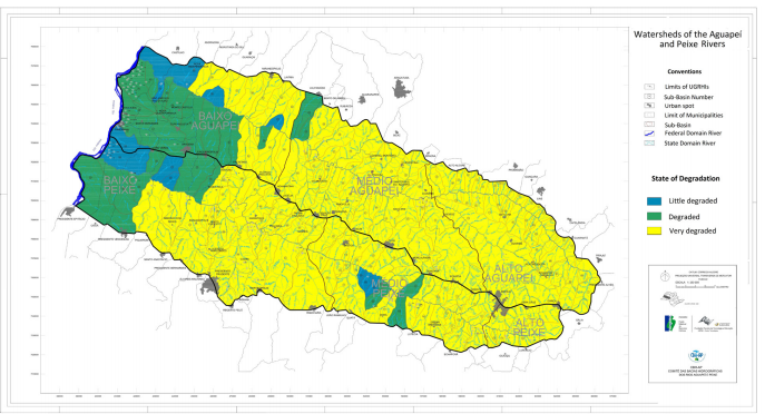 The hydrographic basins of the Aguapeí and Peixe rivers are located in the western portion of the state of São Paulo between the coordinates -49.395142; and -52.168376, west longitude and -20.951768; -22.439189, South latitude. Due to some similarities in the geographic, physical and socioeconomic aspects the Water Resources Management Units (UGRHI) of the Aguapeí (UGRHI 20) and Peixe Rivers (UGRHI 21) were included in a single Hydrographic Basin Committee, according to state law nº 7.663 of December 30th, 1991. Both are managed by the Hydrographic Basin Committee of the Aguapeí and Peixe Rivers (CBH-AP).