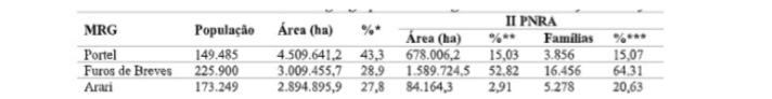 The recognition of the territorial rights of the traditional populations and the achievements envisaged from II PNRA are achievements resulting from the greater participation of civil society in the actions of the State. However, even though the recognition of the traditional populations is a political advance, this study has indicated that there is still a lot of room for the development of this policy in Marajó, especially in the MRGs of Portel and Arari.